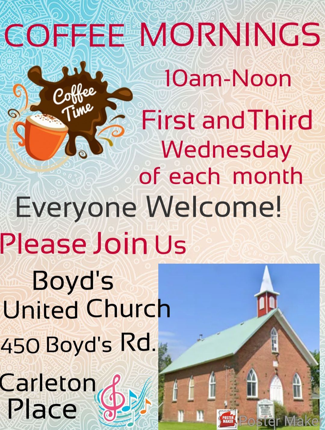 Boyd's United Church is a member of Eastern Ontario Outaouais Regional Council of The United Church of Canada